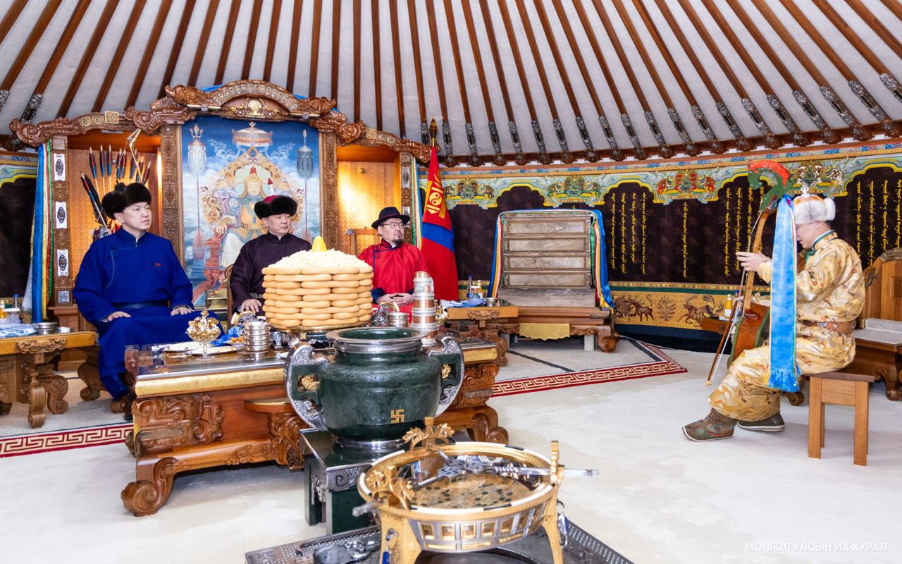 “Сүрээр дарагч” хэмээх гал улаан морин жилийн хаврын тэргүүн сарын шинийн нэгний өглөө /2026.02.18/ Монгол төрийн золголт Төрийн ёслол хүндэтгэлийн өргөөнд 08.30 цагт ёслол төгөлдөр боллоо. Монгол Улсын Ерөнхийлөгч Ухнаагийн Хүрэлсүх, УИХ-ын дарга Ням-Осорын Учрал, Ерөнхий сайд Гомбожавын Занданшатар нар Есөн хөлт цагаан тугандаа хүндэтгэл үзүүлсний дараа Төрийн золголт хийв. Ерөнхийлөгч, Улсын Их Хурлын дарга, Ерөнхий сайд нар ёс заншлын дагуу амар мэндийг эрэн золгож, хөөрөг зөрүүлэн ёсолж, ерөөл билгийг хэлэлцэн, идээ ундааг дээжлэн шинэллээ. Төрийн золголтод уламжлал ёсоор төрийн хан хуурыг эгшиглүүлэн цэнгүүлдэг журамтай. Билгийн тооллын шинэ жилийн эхэнд буюу цагаан сарын шинийн нэгний морин цагт Төрийн ёслол хүндэтгэлийн өргөөнд хан хуурыг төрийн хан хуурч, Монгол Улсын Соёлын тэргүүний ажилтан, ерөөлч, магтаалч Ц.Соёл-Эрдэнэ хөглөн татаж цэнгүүлэв. Гал морин жилдээ төр улс төвшин, түмэн олон амгалан жаргалантай байхыг бэлгэдэн “Морины явдал” аялгуу, “Төр түмэндээ өргөх айлтгал магтаал”-ыг хуурдан аялгууллаа. Шинийн нэгний билэгт сайн өдөр Төрийн золголтод Монголын бурхан шашинтны төв Гандантэгчэнлин хийдийн тэргүүн хамба, лхаарамба Д.Жавзандорж морилон ирж, Монгол Улсын Ерөнхийлөгч, УИХ-ын дарга, Ерөнхий сайд нарт бараалхан золгож, сар шинийн мэндийг айлтгасан юм. Урган төлжиж, ундран дүүрэхийн бэлгэдэлтэй Цагаан сарын баяраар Монгол төрийн тэргүүн болон Улсын Их Хурлын дарга, Ерөнхий сайд нар нутаг нутгийн төлөөлөл, 80-95 насны есөн ахмадыг Төрийн ёслол хүндэтгэлийн өргөөнд урин золгож, хүндэтгэн мэндчиллээ. Өнөө жилийн золголтод Увс аймгийн Хяргас сумын уугуул, 95 настай А.Цэрэв, Баянхонгор аймгийн Өлзийт сумын уугуул, 93 настай Л.Адъяа, Дорноговь аймгийн Иххэт сумын уугуул, 91 настай Ш.Гунгаадорж, Улаанбаатар хотын уугуул, 91 настай А.Дулмаа, Увс аймгийн Зүүнговь сумын уугуул 85 настай Ж.Хайдав, Хөвсгөл аймгийн Цагаан-Уул сумын уугуул, 83 настай Н.Алиасүрэн, Өвөрхангай аймгийн Есөнзүйл сумын уугуул, 82 настай Ц.Дашдорж, Баянхонгор аймгийн Номгон сумын уугуул, 80 настай Д.Должин, Архангай аймгийн Батцэнгэл сумын уугуул, 80 настай Ш.Дэлгэржаргал нарыг хүндэтгэн урьж, тохой өргөн золголоо.